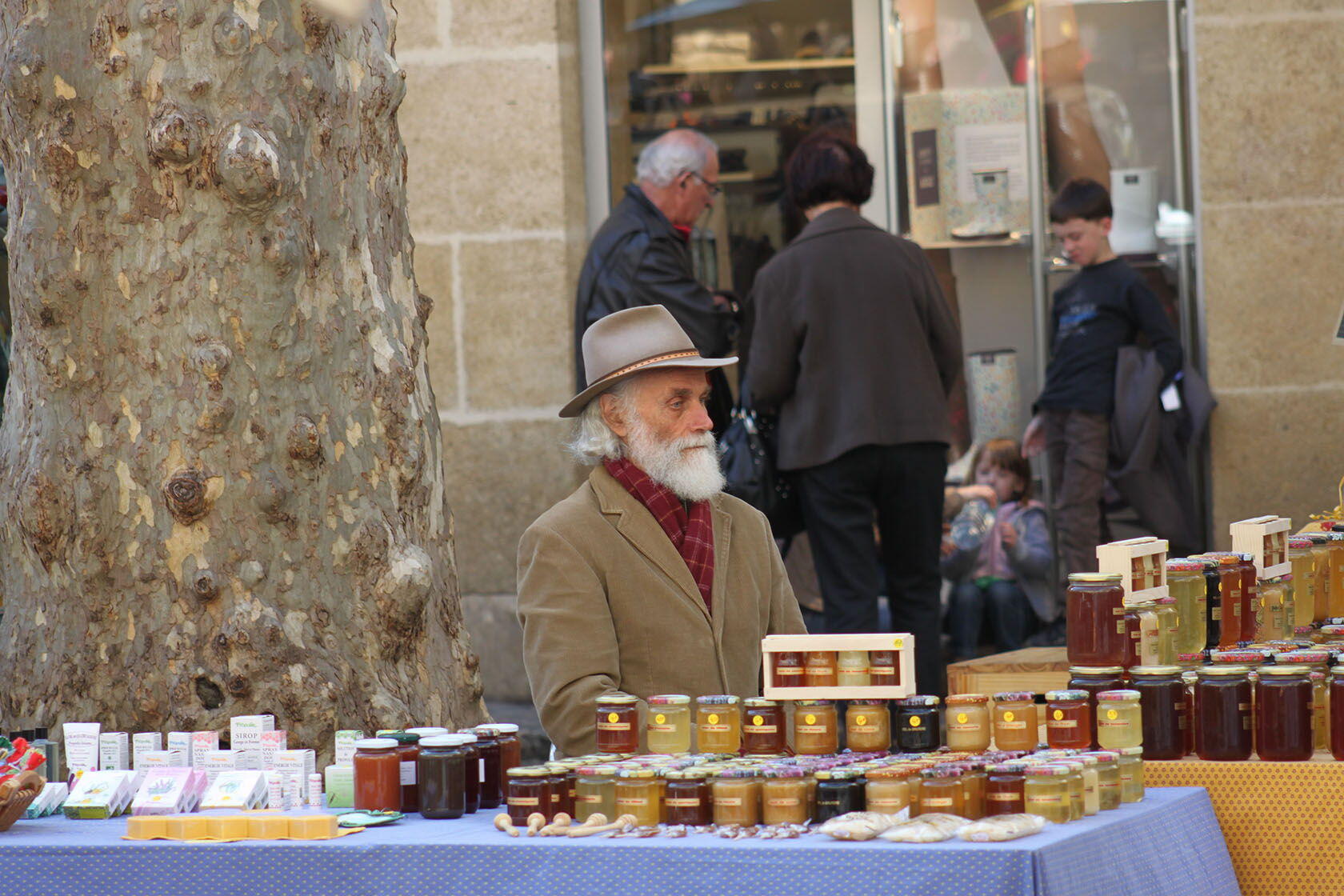 The market is a great place to practice our French. Larry is becoming a regular at the grattons stand. That’s where they sell his favourite food group, grease. Since he can’t afford foie gras, he’ll settle for grattons, fried duck skin. He elicits a smile of recognition from the vendor, followed by what has become a ritual exchange.