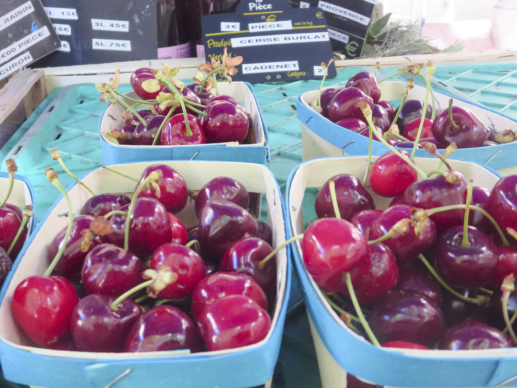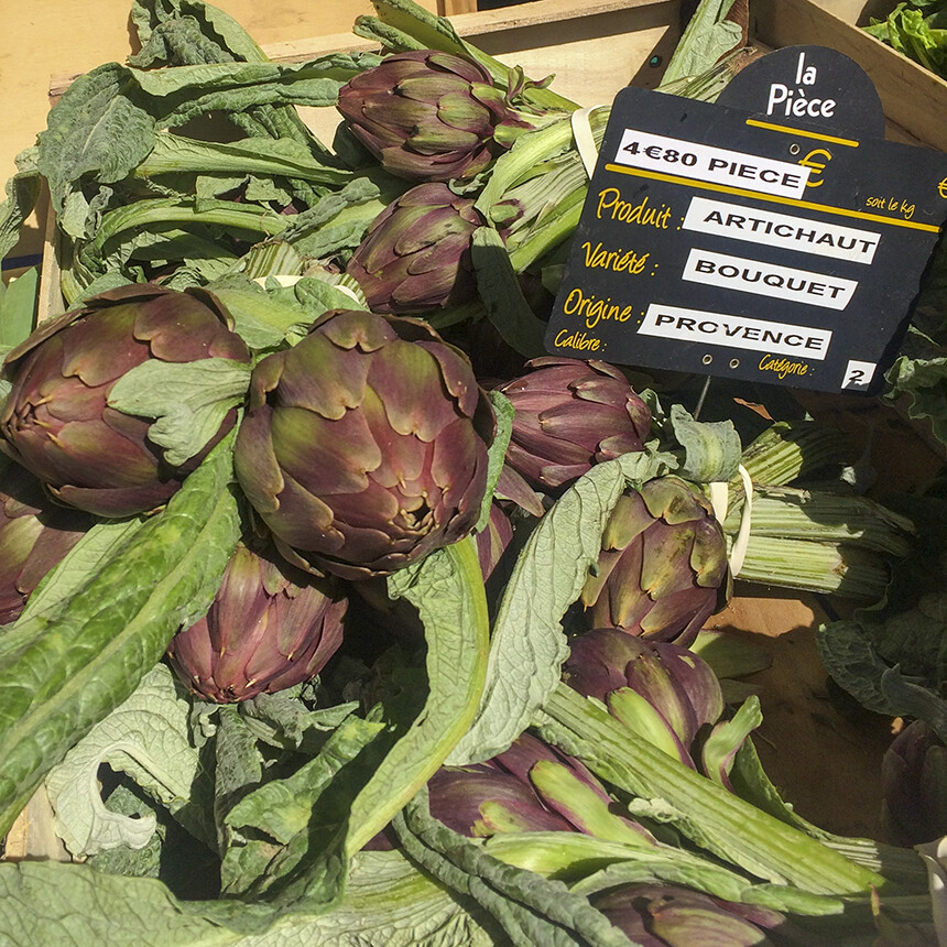 - Individual signs with the prices per item indicate where the product is from. These signs can be as general as the country: France, Italy, etc., or specific down to the village where the item is grown; Cucuron, St. Cannat, Aix-en-Provence.
